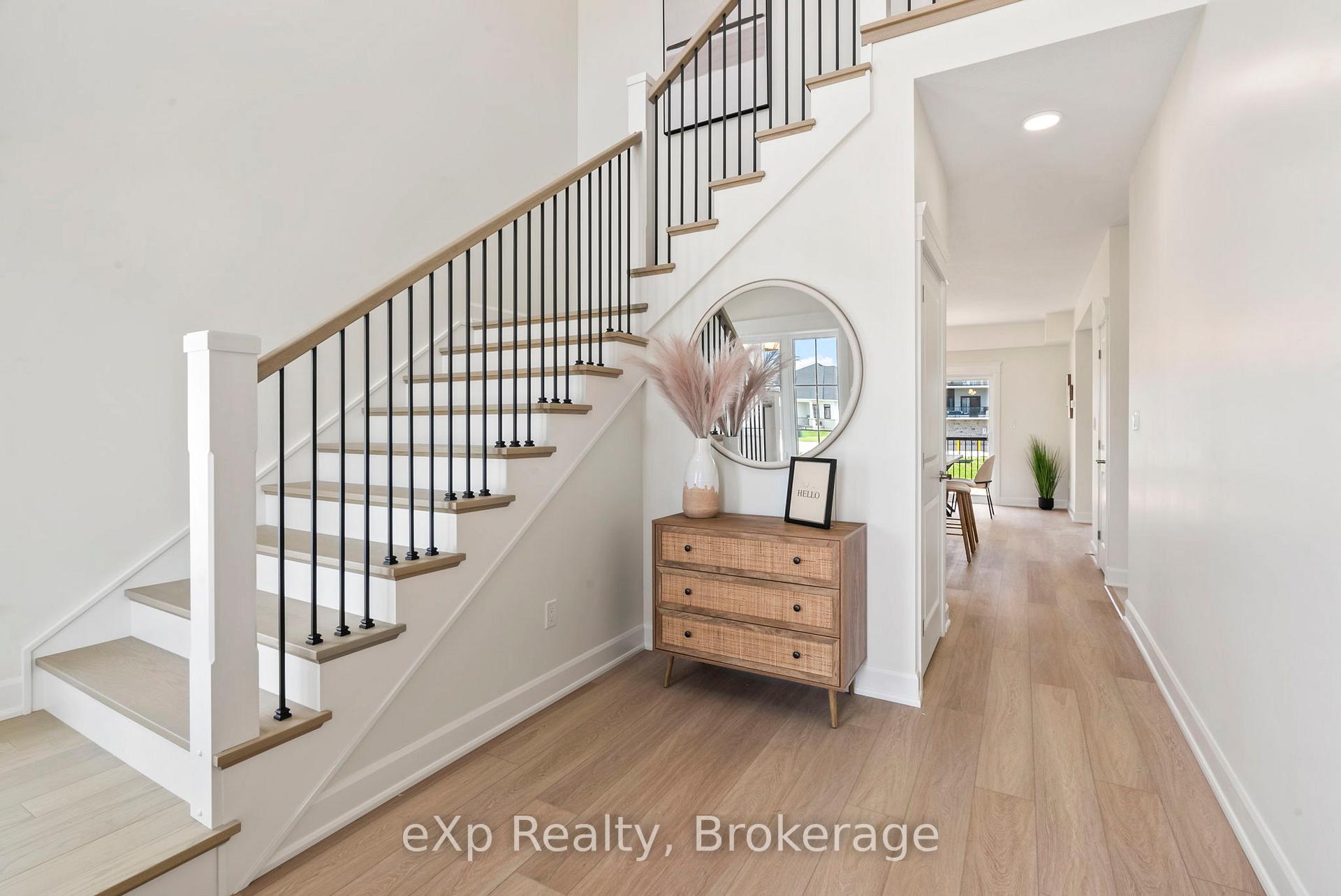The perfect place to grow. A Candue custom build located on the outskirts of Mount Forest. Experience the perfect blend of modern design and rural tranquility in this newly completed 2-storey masterpiece by Candue Homes. Set on a quiet cul-de-sac, the home's stone-and-vinyl facade leads to an interior crafted for the modern family. The heart of the home is the stunning Barzotti kitchen, complete with quartz countertops, premium appliances, and a social island that flows into the dining area and out to the rear deck. The living room serves as a sophisticated focal point, featuring a fluted fireplace surround and custom built-in library nook. With three spacious bedrooms upstairs-including a primary retreat-plus a fully finished basement featuring a second fireplace and fourth bedroom, this home offers over three levels of luxury. Complete with a Tarion warranty, it's move-in ready and built to last.