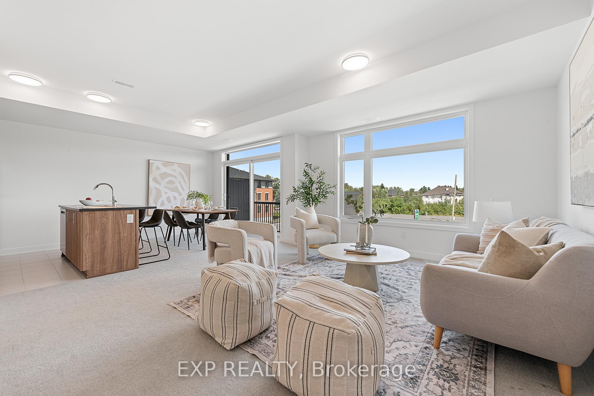 Welcome to 1005 Silhouette Private, a brand new upper unit condo that blends modern design, bright open spaces and everyday convenience in the heart of Barrhaven's growing community at The Junction. Thoughtfully designed with clean lines and oversized windows, this home offers a warm and inviting atmosphere from the moment you step inside. The main level features an expansive open concept layout filled with natural light. The living and dining areas flow effortlessly together, framed by a wall of windows and sliding doors that open onto your private balcony. A perfect spot for morning coffee or unwinding at the end of the day. The kitchen is stylish and functional with flat panel cabinetry, stainless steel appliances, a central island with seating and a well-planned layout that keeps everything within easy reach. A convenient powder room and a bonus study nook complete this level, adding flexibility for work, organization or a small tech space. Upstairs, two generously sized bedrooms offer comfort and privacy. The primary suite includes a walk-in closet and a three piece ensuite, while the second bedroom sits beside a full bathroom and linen storage. Laundry is also located on this level for added ease. With 2 bedrooms, 2.5 bathrooms, upgraded finishes and a bright airy feel throughout, this home is truly move in ready. Outside, enjoy a private balcony and the simplicity of an exterior parking spot. Located steps from everyday amenities, cafés, shops, green spaces and only minutes to transit, parks, schools and the new LRT extension, this is a community designed for convenience and connection. If you are looking for a stylish low maintenance home with a smart layout and modern finishes, 1005 Silhouette Private is a must see. Located just minutes from shopping and Costco, this home offers modern living with unparalleled convenience.
