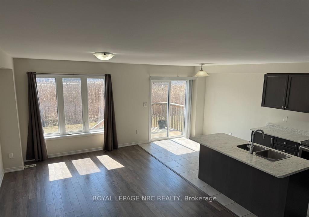 END UNIT 2 storey townhouse in Thorold built by Empire available for lease. Main floor features an open concept family room with hardwood flooring + kitchen with large island prep sink/cabinet space/SS appliances/sliding patio door walkout onto private backyard deck. Main floor also contains laundry/2pce powder/garage with inside entry for added convenience. Second floor has 3 good sized bedrooms including spacious master with deep walk-in closet & 4pce en-suite with bathtub/standing shower. Upstairs also features separate 4pce bath & linen closet. Large unspoiled basement is perfect for extra storage. Very central to all nearby amenities & just 2 mins to 406. Tenants to assume all utilities. Appliances included. One year lease minimum. Available March 1st. Landlord requires: credit check, employment letter, references, rental application, tenant insurance, & 1st/last month deposit.