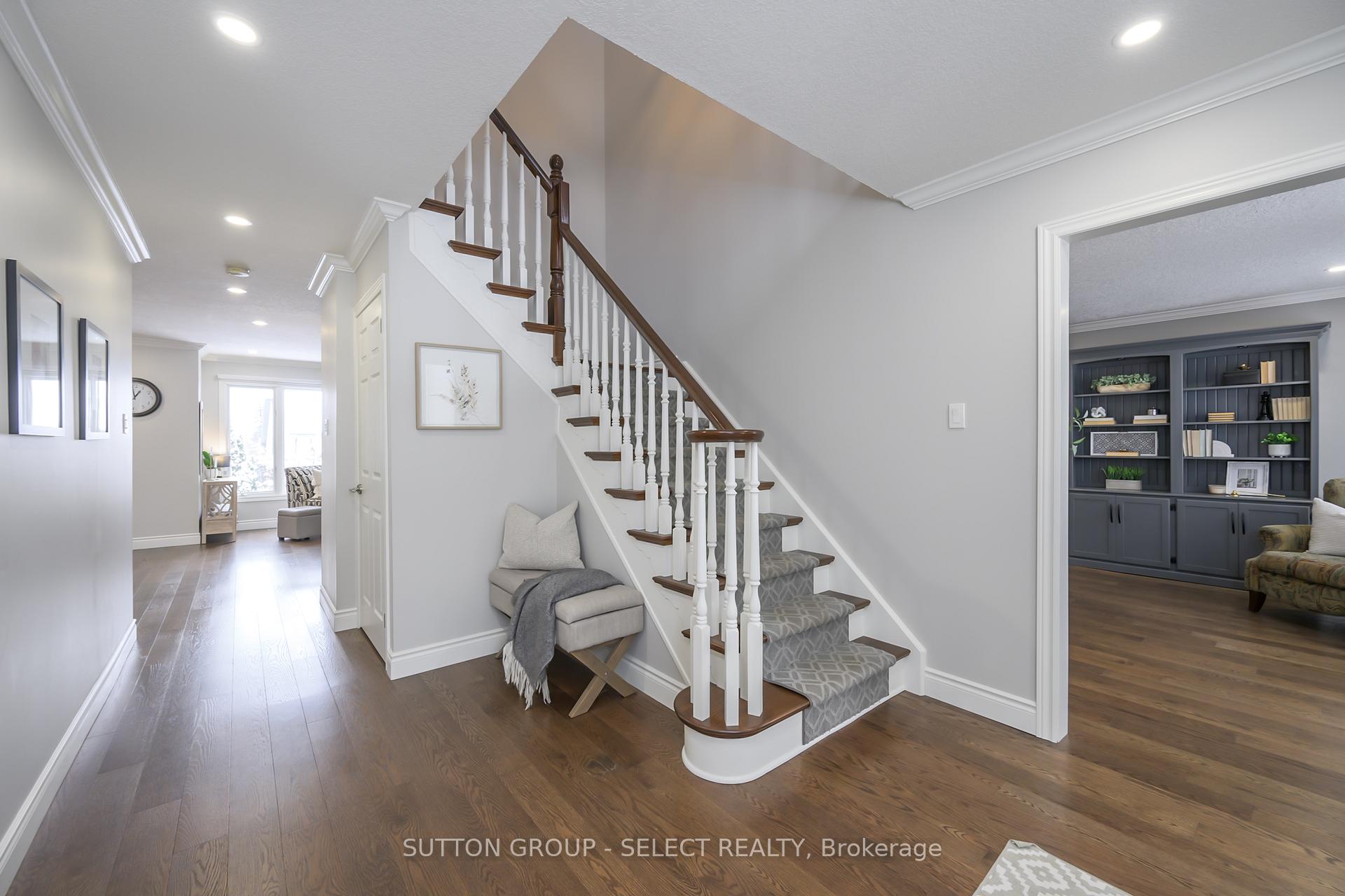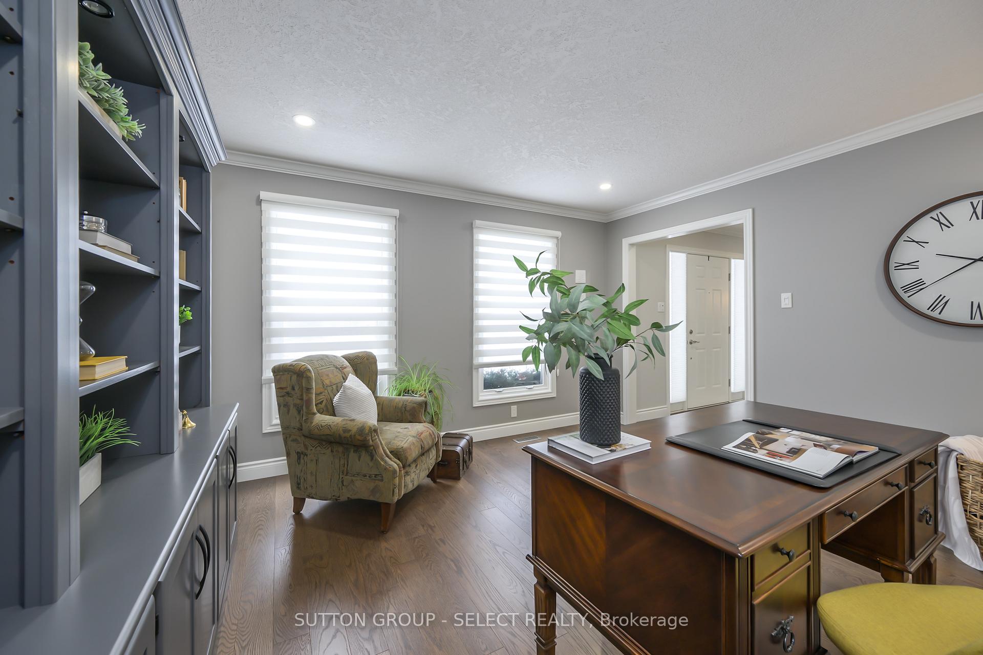 Set on a quiet crescent in the Masonville Public School catchment, this exquisitely upgraded executive home delivers refined living and a resort-style backyard retreat rarely found in the city. Minutes to Western University, University Hospital, St. Joseph's, Sunningdale Golf, and Ivey, the location is unmatched for academic, medical, and professional families. Playgrounds, community parks, and the Medway Valley Heritage Forest trail system elevate the lifestyle with nature just steps away. Inside, the home offers a warm, polished atmosphere with a gracious foyer, separate dining room, and a sun-filled living room with a fireplace and sweeping backyard views. A main-floor office provides a quiet, private workspace set apart from the principal rooms. Premium window treatments, rich hardwood flooring, and fresh neutral tones underscore the home's elevated aesthetic. The kitchen is a showpiece-designed with intention, luxury, and performance in mind. Wall-to-wall cabinetry creates exceptional storage and prep space. Stainless appliances include an impressive 6-burner gas range, while espresso cabinetry with backlit rain-glass uppers adds dramatic depth. Granite surfaces enhance the space and the contrast-tone, 4-seat island. The laundry/mudroom enhances daily function with built-in cabinetry, a full folding counter, and garage access. Upstairs, the generous primary suite offers a walk-in closet and a spacious ensuite. Three additional bedrooms share a refreshed main bath, and the lower level provides substantial storage and future potential. The backyard is the true showstopper: a heated pool anchors a private outdoor resort with multiple zones for lounging, dining, entertaining, and relaxing. A pergola lounge, tiki hut/bar, dining gazebo, and manicured green space framed by mature trees create a setting that feels worlds away. With a double garage and commanding curb appeal, this home delivers exceptional family living in one of London's most desirable neighbourhoods.