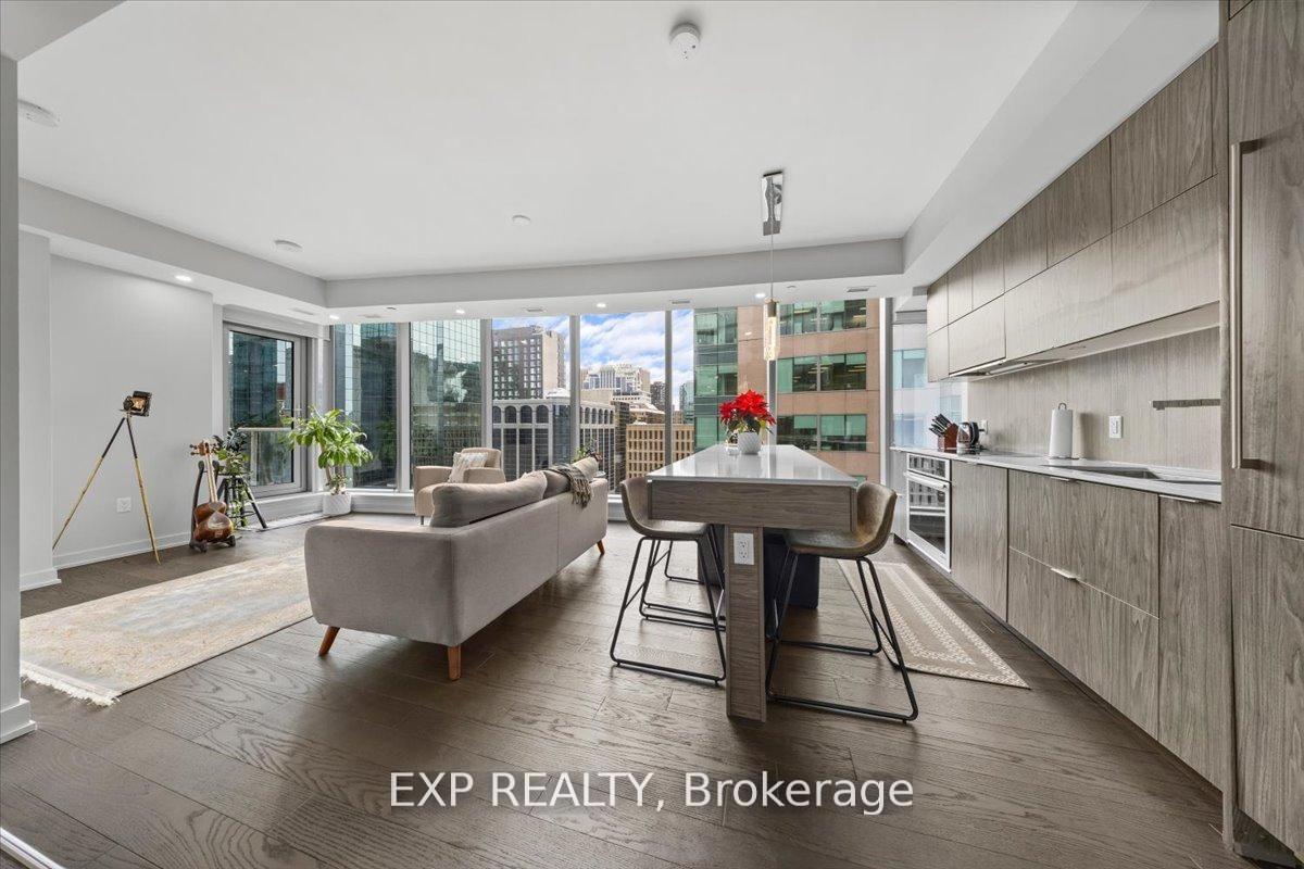 Welcome to Unit 910 at 101 Queen Street - the pinnacle of Ottawa luxury living. This stunning 2-bedroom, 2-bathroom corner suite offers an elevated lifestyle in the heart of the capital, with sweeping views of the downtown skyline framed by floor-to-ceiling windows and a private corner patio perfect for morning coffee or evening unwinding. Inside, the unit showcases high-end finishes throughout, including rich hardwood flooring and two beautifully appointed full bathrooms designed with premium materials. The thoughtful layout provides both comfort and sophistication, ideal for professionals or anyone seeking an urban sanctuary steps from it all. Located just moments from Parliament Hill, federal office buildings, boutiques, restaurants, shopping, recreation, and the future home of the Ottawa Senators, this address places you at the centre of the city's most exciting developments for years to come. 101 Queen Street is renowned for offering Ottawa's most expansive amenity collection, including a private movie theatre, a full indoor fitness centre, professional office and co-working spaces, a rejuvenating sauna, and the iconic and private access Sky Lounge overlooking Parliament Hill. This is more than a condo - it's a lifestyle defined by elegance, convenience, and unmatched access to the best of the city. Unit 910 at 101 Queen Street invites you to experience luxury living at its finest.
