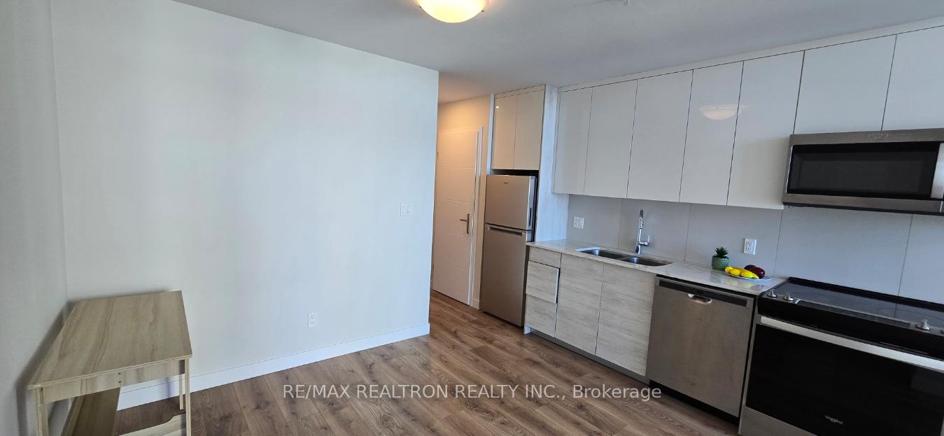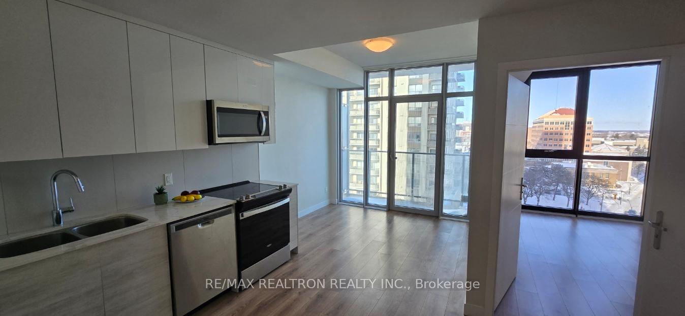 Spacious, sun-filled one-bedroom suite in the heart of Downtown Kitchener. Thoughtfully designed 530 sq ft total living space with an open balcony and stunning South-East panoramic views, flooded with natural light through oversized windows. High ceilings and premium finishes throughout. Swiss laminate flooring in the living/dining area, kitchen, and bedroom; porcelain tile in the bathroom and laundry. Modern contemporary kitchen featuring quartz countertops, stainless steel double sink, under-cabinet lighting, and porcelain tile backsplash. Stainless steel refrigerator, slide-in range, microwave, ducted exhaust, and built-in dishwasher. Stylish bathroom with glass shower door and porcelain tile flooring. Energy-efficient, individually controlled heating and cooling system. Outstanding amenities include concierge, fitness centre, yoga studio, party room, landscaped rooftop terrace with mini dog park, on-site security, and smart home features. Steps to the Kitchener Historic Core, Google Headquarters, City Hall, major corporate offices, restaurants, schools, and Conestoga College Downtown Campus. ION LRT stop at the building. Walk Score of 97. Ideal for young professionals, downsizers or first-time buyers.