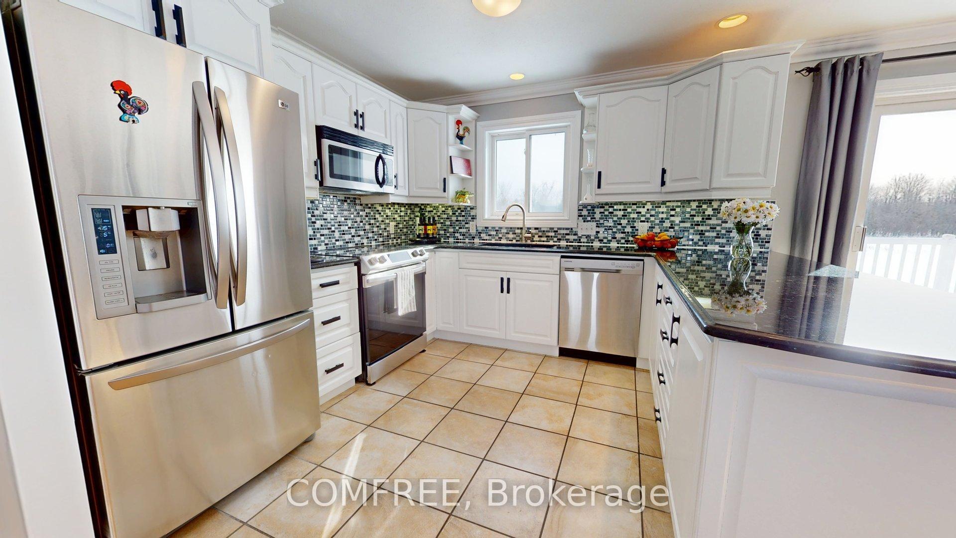 This raised bungalow offers the perfect balance of comfortable living and peaceful country surroundings, all set on a lovely 1-acre lot just minutes from historic Perth. The main level features a welcoming open-concept layout with a stylish kitchen with granite countertops, dining, and living areas designed for easy everyday life and entertaining. Three bedrooms and two full bathrooms complete this level, along with access to a raised deck overlooking an expansive yard with forest views. Maple hardwood and ceramic flooring runs throughout the main floor. The fully finished lower level adds exceptional versatility, featuring inside access from the heated double-car garage, a large recreation room with walk-out to a covered deck, a fourth bedroom, a third full bathroom, and a utility/laundry room. With no carpeting throughout the home, it's an ideal choice for those with allergies or pets. For hobbyists, gardeners, or anyone just wanting extra space, the property truly delivers. In addition to the heated attached garage (approx. 20' x 20'), there is a large detached garage/workshop (approx. 32' x 28') - perfect for hobbies, tools and/or toys to store. Ample indoor and outdoor parking includes an area large enough for an RV with power hookup. The grounds also feature two garden sheds and a fenced raised garden in a quiet neighbourhood setting on a school bus route with curbside garbage and recycling collection. This home has been thoughtfully maintained offering very affordable annual operating costs with no rental equipment and efficient natural gas heating & air conditioning. Excellent high-speed internet is also available. Recent updates include a new roof (2024), furnace, air conditioner, stove and dishwasher (2023). Check out this lovely versatile home that offers space and comfort, in a quiet country setting close to town!