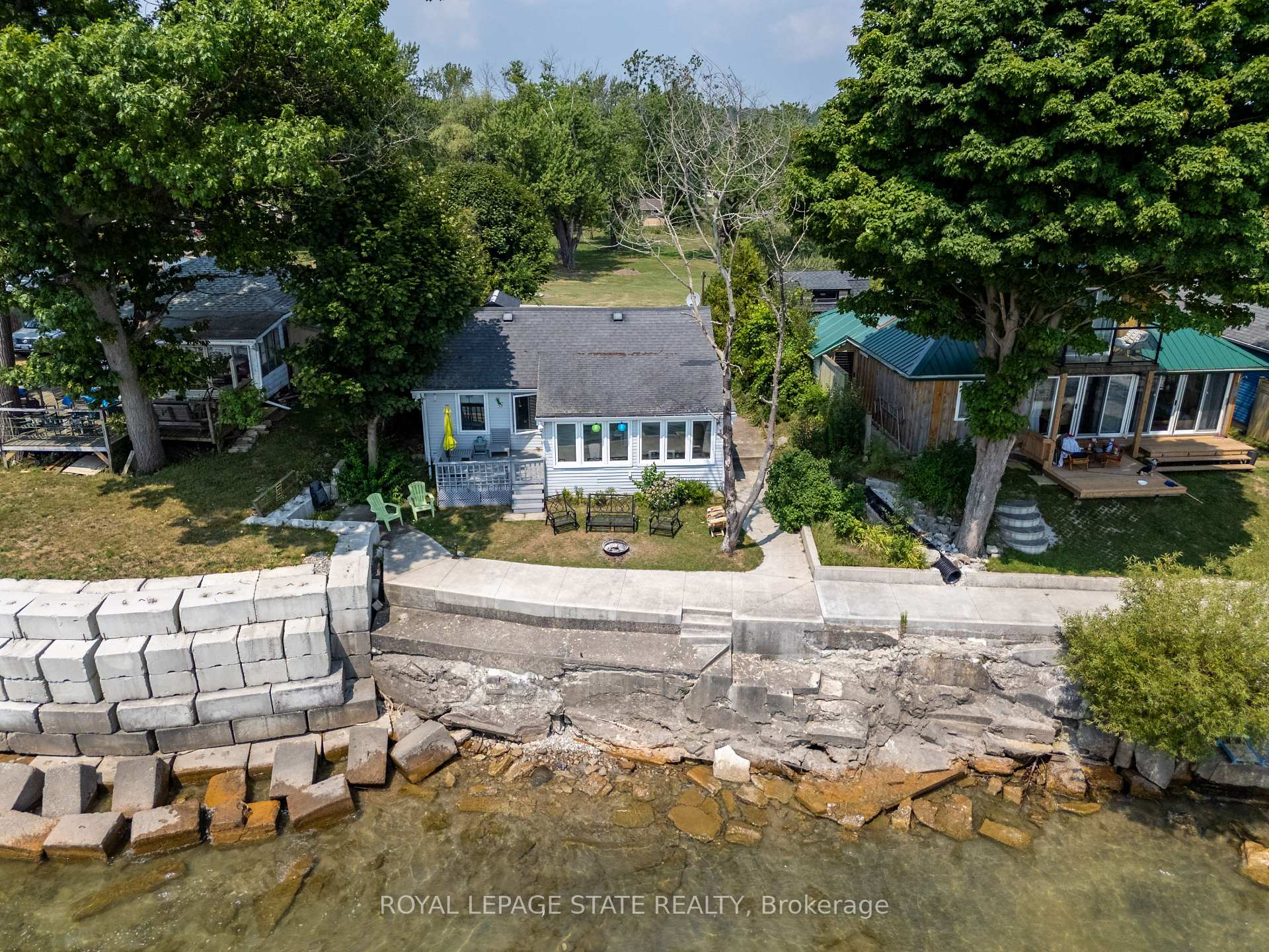 Peaceful Lake Erie retreat providing a rare blend of privacy, panoramic water views, and direct lakefront access. This 3-bedroom cottage features a spacious living area and a wall of lake-facing windows that fill the space with natural light and frame stunning views from sunrise to sunset. The property includes a garden shed for added storage, relaxing fire pit, and concrete steps leading down to the water. Located just down the road from Knight's Beach Resort and short drive to Dunnville, this is an ideal opportunity for a serene lakefront getaway.