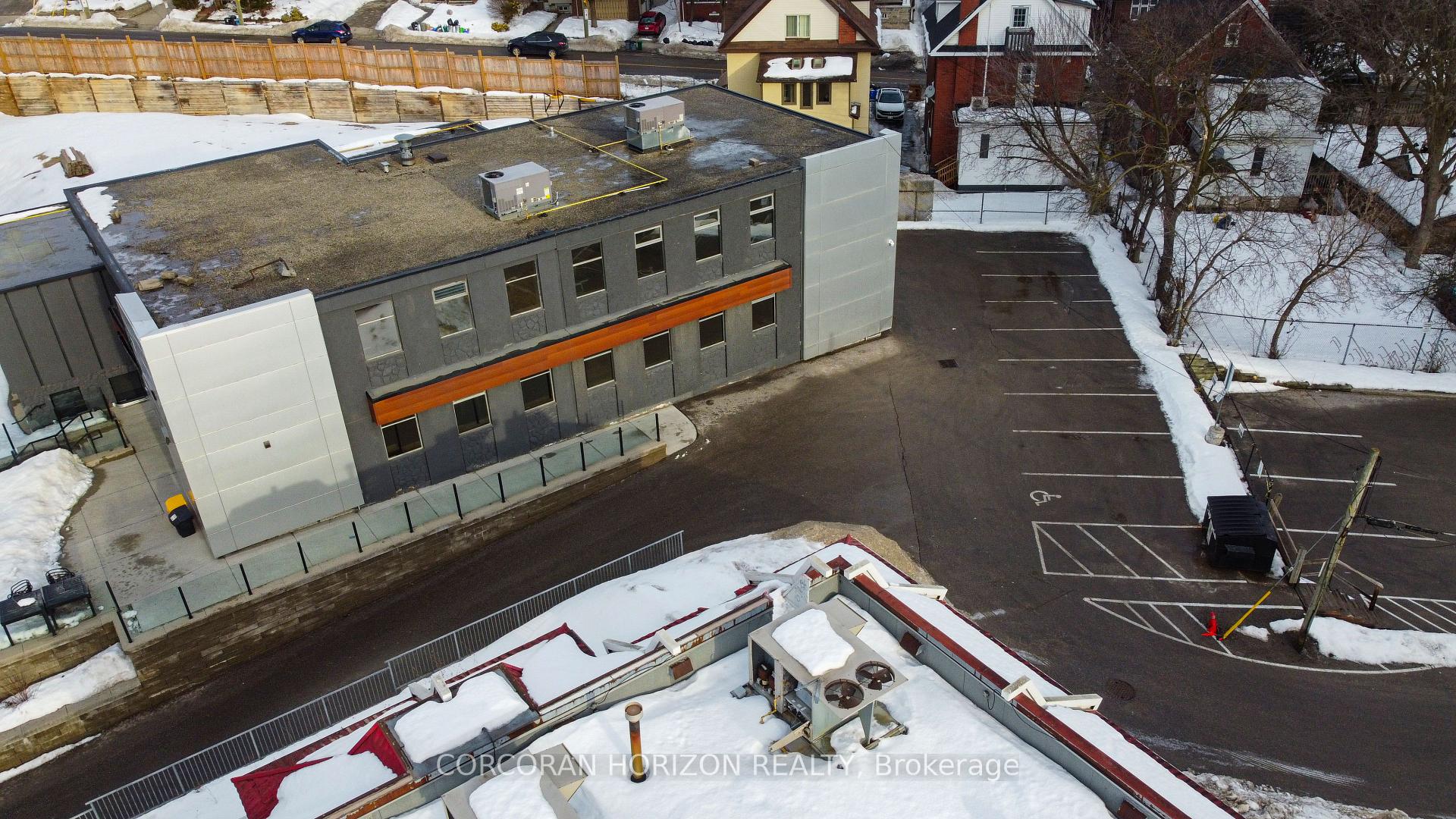 A rare, turnkey office opportunity in one of Downtown Kitchener's most desirable locations. Positioned steps from the ION LRT and immediately adjacent to the Google building, this fully renovated property offers strong presence within a rapidly evolving urban core. The space is thoughtfully designed to support modern workstyles, combining open, light-filled areas with private offices and meeting rooms across multiple levels. A signature main-floor café anchors the building, featuring a gas fireplace and accordion-style doors that open onto a private patio-ideal for client hosting, team gatherings, or events. The property offers exceptional flexibility, designed to adapt to a wide range of tenancy structures-from fully dedicated use to collaborative, multi-occupant environments. The layout includes multiple open-concept work areas, upgraded private offices on both upper and lower levels, five meeting rooms, seven washrooms, and several kitchenettes, including a dedicated staff kitchen. Large windows throughout provide excellent natural light and an energized work environment. A significant downtown advantage, the property includes 27 on-site parking spaces, a rare offering that enhances accessibility for staff, clients, and visitors. Well suited for office, technology, creative, or professional tenants seeking a premium, transit-oriented location with character, functionality, and flexibility.