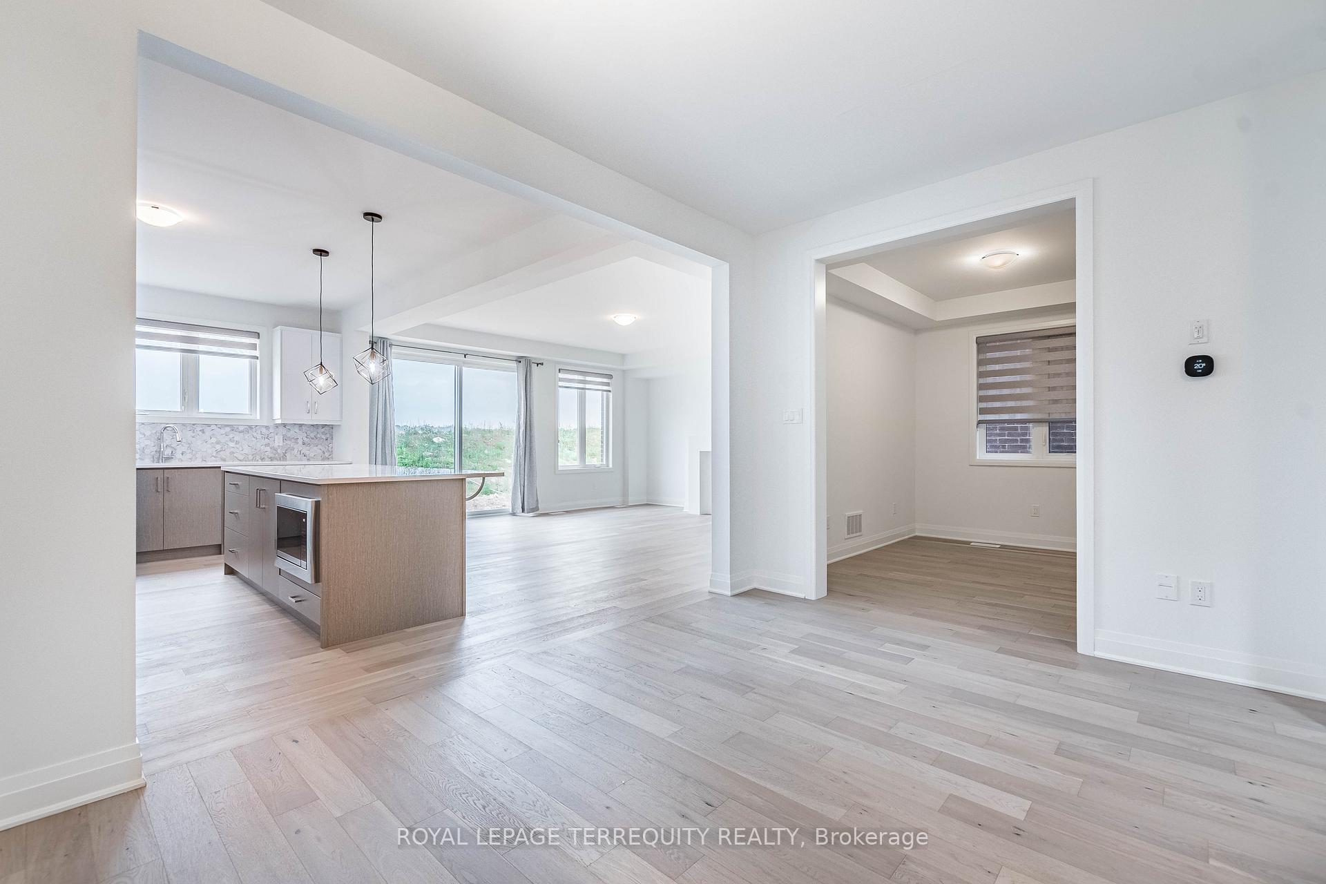 Welcome to this stunning, luxurious 2666 sqft modern home in the highly sought-after community of Wildflower Crossing. Backing on to the beautiful man-made water pond featuring 4 bedrooms, 3.5 bathrooms, and a separate office/den on ground floor in a highly desirable and convenient location. This home boasts a spacious great room with a gas fireplace and an attached 2-car garage. Located just minutes from schools, colleges, shopping centers like Walmart and Home Depot, and a variety of restaurants.Enjoy 9-feet smooth ceilings on both the main and second floors. The main floor and upper hallway are adorned with hardwood flooring, while the bedrooms are carpeted for comfort. The modern, two-tone kitchen offers ample storage and is equipped with premium smart appliances, including a refrigerator, gas range, dishwasher, and built-in microwave.The main floor includes a walk-in closet, and there are two additional walk-in closets on the second floor. The home backs onto green space, ensuring plenty of natural light throughout. A second-floor laundry room is equipped with built-in cabinets and a premium washer-dryer set. Premium zebra blinds are included for added privacy, and a new A/C unit has been recently installed. Technologically advanced, fitted with CAT6 cable all across the home for better internet connectivity. Other notable smart home features will boost your convenience. This home offers the perfect blend of comfort and sophistication, ready for you to move in and enjoy.