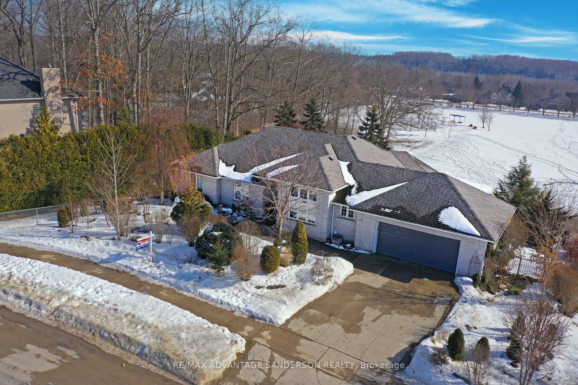 Extraordinary opportunity in sought after Old Kilworth, where privacy, nature, & quality come together in a way that is nearly impossible to find in today's market of small lots & quick builds. This 4000 sq ft mostly finished above grade approx. (including lower-level walk-out) custom built Rawlings ranch backs onto a breathtaking expanse of forest & open field, offering a wide, uninterrupted vista of rainbows, summer storms, & spectacular autumn colour. Designed for those who crave space, serenity, & connection to nature, this home is ideal for bird watchers, dog walkers, nature enthusiasts, multi generational families, or anyone seeking the option of a separate rental suite to help offset mortgage costs. Oversized windows & 10 ft ceilings flood the home with natural light. Large deck off kitchen overlooks forest & fields - the perfect spot for morning coffee or evening sunsets. Professionally landscaped with a large fishpond, brook, & waterfall, creating a peaceful backyard sanctuary. Spacious, flexible living - currently 4 bedrooms (could be more) - ideal for large families, guests, multi generational living or income-generating rental. Expansive lower family room, rough-in for a bar or kitchenette. Bright, open kitchen with quartz countertops, maple cabinetry, & new stainless appliances. Unbeatable Location - a true community-oriented neighbourhood with mature trees, quiet streets, & small town feel. Just steps from: Pickleball, tennis, basketball, baseball, & soccer facilities, the Thames River for hiking, kayaking, canoeing, & fishing. Excellent schools & quick access to the 402. This home offers size, privacy, nature, community, & craftsmanship. With extremely limited inventory in Old Kilworth, properties like this are rare. Whether you're seeking a peaceful nature retreat, a spacious multi generational home, or a property with income potential, this home delivers it all. Experience the beauty, privacy, & possibilities of this remarkable Kilworth sanctuary.