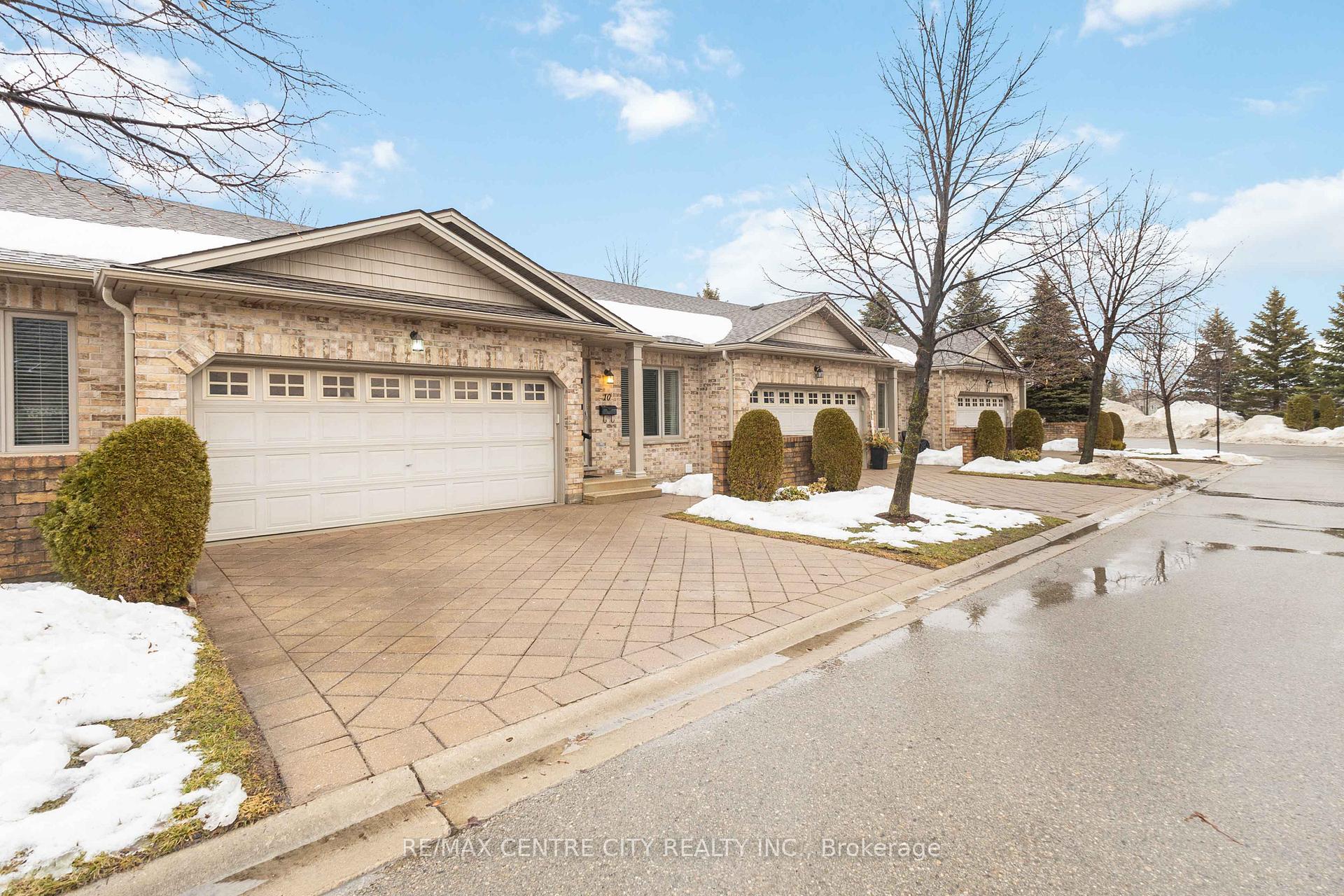 This impeccably maintained townhouse offers a wonderful option for a first time buyer, small family or downsizer. Nestled in the popular community of Stoney Creek, this location showcases convenient access to many popular amenities including the YMCA, Sunripe Market, Masonville shopping district, and many other well-loved businesses. A sunny courtyard offers an inviting place to enjoy a cup of coffee or some neighbourly conversation. The comfortable foyer allows guests to be welcomed with ease, alongside inside entry from the double car garage. A front bedroom overlooks the well maintained condo grounds, with plenty of natural light pouring in from the large window. Discover a full bathroom and connected main floor laundry room just steps away. An open concept floorplan allows ease of access without compromising on space to host loved ones for Sunday dinners and holiday gatherings. Appreciate a spacious dining area with room to seat a crowd, adjacent to a functional kitchen that includes plenty of warm cabinetry, ample counter space, and raised breakfast bar overlooking the great room. The living space features vaulted ceilings, newer hardwood flooring, and an oversized patio slider providing access to the deck with natural gas BBQ line and retractable awning, overlooking mature trees. A generous primary bedroom includes serene views of the grounds, double closets, and a tasteful 3PC ensuite with shower. The finished lower level sprawls with plenty of additional living space. A third full bathroom, spacious family room with gas fireplace, and third bedroom ensures there is plenty of room for everyone to remain comfortable. Plenty of space for tinkering, hobbies, or simply storage exists in the partially finished utility room. All this in a well run condo corporation, with nothing to do but unpack your boxes and enjoy the convenient living that Stoney Creek Grove offers.