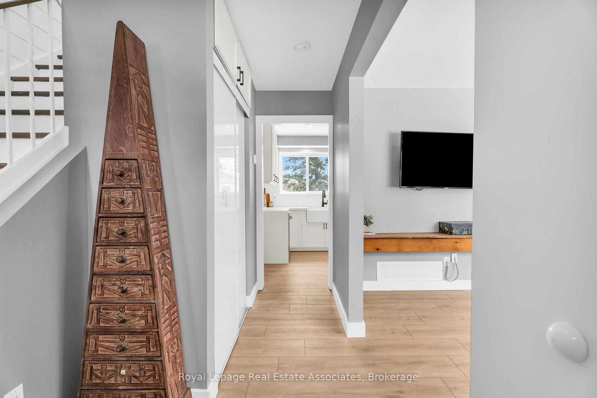 This beautifully updated 4-bedroom home is move-in ready, offering modern finishes and thoughtful upgrades throughout. Located in a welcoming, family-friendly neighbourhood.Step into the inviting foyer and enjoy the bright, open-concept main floor filled with natural light and featuring pot lights throughout. The spacious living and dining areas flow into a stunning renovated kitchen (2021) showcasing white cabinetry, quartz countertops, Moen fixtures and brand new stainless steel dishwasher. A stylish 2-piece powder room completes the main level.Upstairs, you'll find four generously sized bedrooms and an updated 4-piece bathroom, accented by barn doors throughout the second level.The finished basement extends the living space with a cozy family room featuring a wet bar and bar fridge/wine cooler, a 3-piece bathroom, and a laundry area with in-floor heating. The basement also offers excellent storage and pot lights throughout.Additional upgrades include brand new luxury vinyl plank flooring throughout, fresh paint, sump pump (2018), and a tiered backyard deck with hardwired stair lighting-perfect for entertaining. Major mechanicals are all owned and updated, including a tankless water heater (2020), furnace (2020), water softener (2020), and central air conditioning (2020).The beautifully landscaped front yard and private backyard with mature trees create a perfect outdoor setting for kids and gatherings. Just steps to downtown Shelburne, schools, shopping, the rec centre, and parks-this is a fantastic opportunity in a prime location.