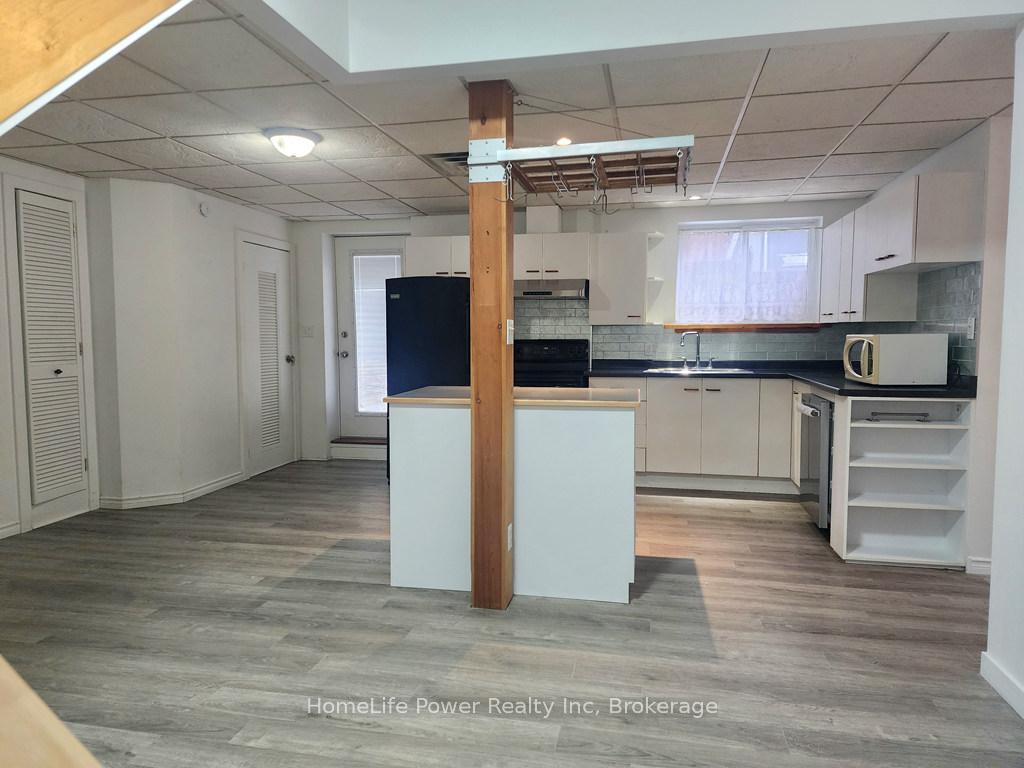 Welcome to 110 Surrey St E - a truly unique downtown Guelph property blending charm, comfort, and versatility. This 1.5-storey detached home offers 3 bedrooms, 2 bathrooms, and 1,176 sq ft of bright, thoughtfully designed living space. The open-concept main floor creates a warm and inviting atmosphere, perfect for everyday living and entertaining. The kitchen features a central island with overhead pot rack, forming a natural gathering hub, while the adjoining living area is filled with natural light. A convenient 3-piece bathroom with new stacked washer and dryer completes the main level, along with two well-sized bedrooms. Two separate entrances - one at the front and one leading directly to the fully fenced courtyard - provide excellent flow and added privacy. The courtyard is a private outdoor retreat with a stone patio, storage shed (ideal for hobbies or additional storage), and space for entertaining. Upstairs, the expansive loft-style primary suite serves as a private sanctuary, offering a full bathroom, abundant natural light, and a walkout deck - perfect for morning coffee or relaxing evenings. A private driveway offers ample parking. Located just steps to shops, cafés, parks, and transit, this home is ideal for families, professionals, or entrepreneurs seeking a vibrant downtown lifestyle. Rent: $2,700/month plus utilities. Immediate possession available.