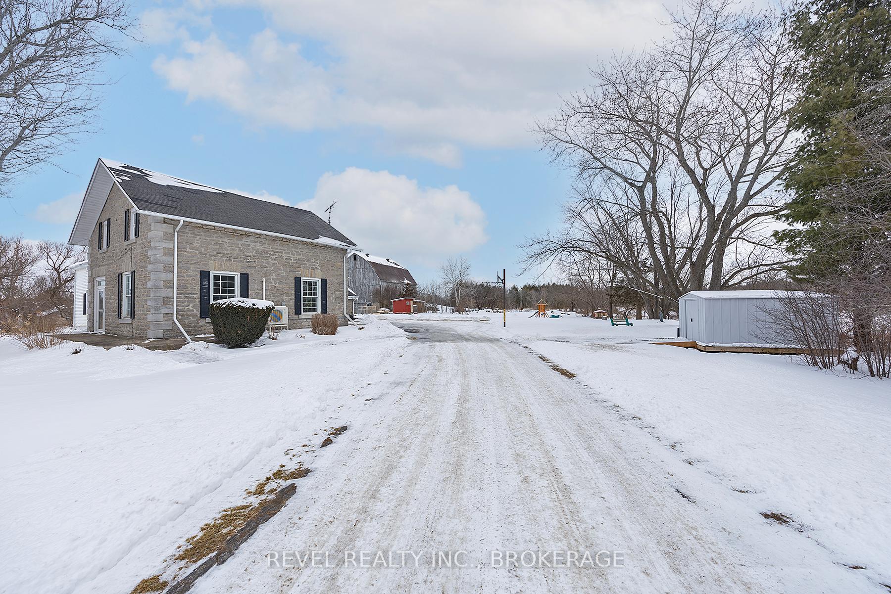 Welcome to 2964 Highway 38, a breathtaking limestone century home set on 30 picturesque acres, just 7 minutes from Kingston. This timeless residence blends historic charm with modern comforts, offering a serene escape with easy access to city amenities. This spacious home boasts over 3500 sq ft of living space, with 6 bedrooms, 3 bathrooms, and an incredible living room with vaulted ceilings and exposed beams, perfect for those cozy nights in front of the fireplace. This home used to be 2 separate wings, where 2 farming families lived- so as you move to the other wing through the cozy kitchen offering views of your barn in the backyard, you'll be greeted by a fantastic study room, whether you are looking for a home office, craft room, sitting room or library, your options are endless! Full of history, charm and character this home and property offers endless possibilities whether you dream of hobby farming, outdoor recreation, or simply enjoying the beauty of nature from your own backyard. With ample space and a stunning rural setting, this is a rare opportunity to own a piece of history with modern convenience. Don't miss your chance to experience the perfect blend of heritage and country living, just minutes from Kingston.