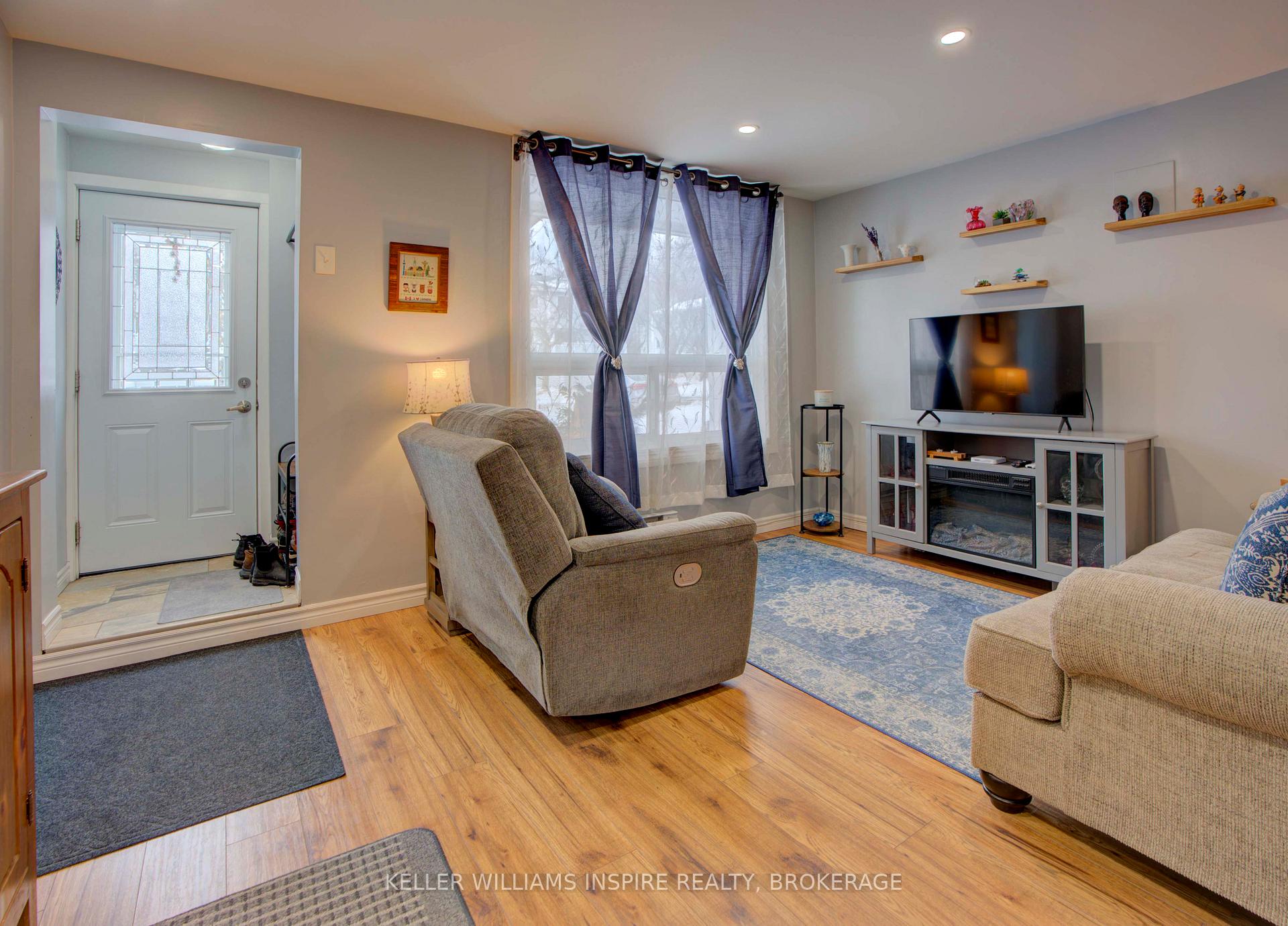 Beautifully updated two-storey townhouse set beside a lovely waterfront park on the shores of Lake Ontario. This 2 bedroom, 2 bathroom home has been thoughtfully updated over the past six years, including new drywall, modern potlights, and professional painting completed two years ago. Carpet-free throughout, the spacious living and dining area is filled with natural light and is a great space to relax or entertain. The custom-designed kitchen, completed two years ago, features lots of cabinetry and storage, modern appliances, and direct access to the backyard.Step outside to a private outdoor space with no rear neighbours, a concrete patio, large shed, and full privacy fencing - perfect for enjoying the warmer months. A convenient 2-piece bathroom completes the main level.Upstairs, you'll find two great-sized bedrooms with plenty of closet space, including the primary bedroom with double closets, along with a 4-piece bathroom featuring a deep soaker tub. The slab-on-grade layout offers easy living, with a welcoming foyer and extra storage. Other highlights include an owned hot water tank (8 years old), a dedicated storage unit, parking space, access to an on-site inground pool, and access to a shared waterfront park area.