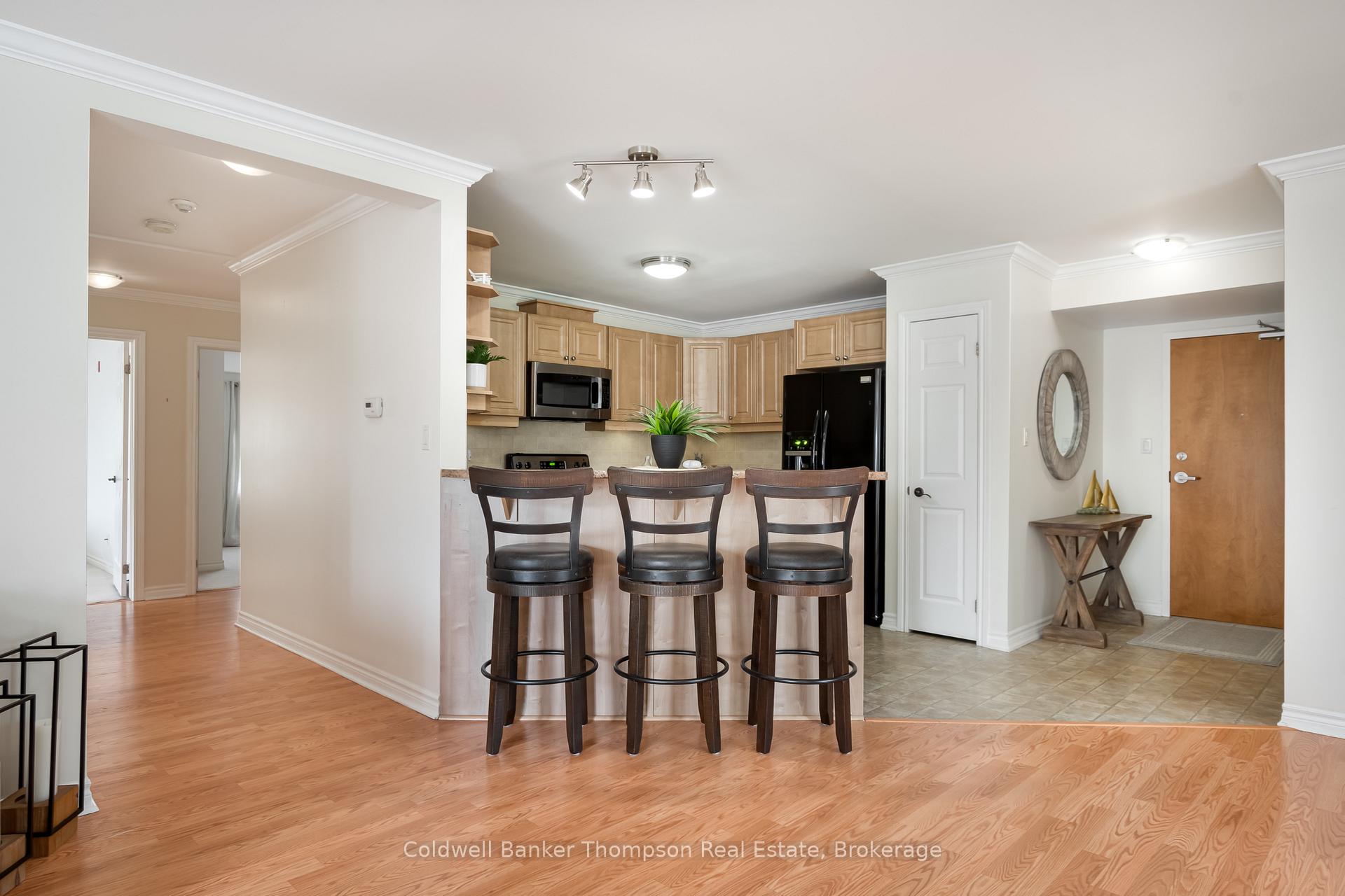 This elegant ground-floor condo offers nearly 1,500 square feet of refined, single-level living with a layout designed for both comfort and style. The open-concept kitchen, dining, and living areas flow together seamlessly, creating a bright, welcoming space ideal for everyday enjoyment or effortless entertaining. Large windows and a southwest-facing patio invite natural light and warmth throughout the day, extending your living area outdoors and providing a lovely setting for morning coffee or evening relaxation. The spacious primary suite is a private retreat, complete with a walk-in closet and a well-appointed 3-piece ensuite featuring heated floors, an everyday luxury you'll appreciate. Two additional bedrooms are both generously sized, with large closets for plenty of storage, offering flexibility for guests, a home office, or hobbies, while the 4-piece guest bathroom ensures convenience and comfort for visitors. The laundry area is discreetly tucked away with the utilities, keeping everything organized and out of sight without sacrificing functionality. Unique to this building, the storage locker is located on the same floor as the unit, a rare and highly convenient feature. Additional ease comes with a secure underground parking space and the freedom of no exterior maintenance, allowing you to focus on what matters most. Situated in a well-maintained residential building, this home combines practical features with timeless design for a truly comfortable and elevated lifestyle.