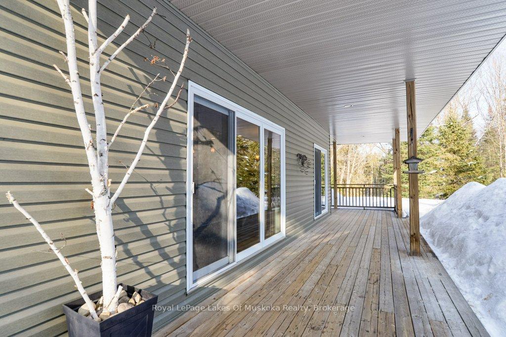 Welcome to your private country sanctuary nestled on a picturesque 2-acre lot overlooking a tranquil pond where birds and wildlife gather. This thoughtfully designed custom-built home with 3800sq. feet of living space offers the perfect blend of space, comfort, and Muskoka charm - ideal for extended family living or hosting overnight guests. Enjoy warm summer breezes from the expansive wrap-around veranda that flows seamlessly into a large, covered deck - perfect for outdoor dining and BBQs while taking in peaceful views of the pond and surrounding forest. Inside, the open-concept main floor welcomes you with soaring cathedral ceilings and gleaming red ash hardwood floors. The spacious primary bedroom is conveniently located on the main level, complete with patio doors leading to the backyard deck and pond views. A generous 4-piece bathroom and main floor laundry add to the home's functionality. Upstairs, a versatile loft with a wet bar opens through patio doors onto two large private balconies offering stunning forest views. Two additional bedrooms and another full 4-piece bathroom complete the upper level. The lower level presents incredible potential for approximately 1,400 sq. ft. of additional family accommodations. With above-grade windows and two walkouts to the backyard, the space is bright and welcoming. It currently includes a finished fourth bedroom, a third 4-piece bathroom, a spacious rec room, and a family room that could easily be completed as an eat-in kitchen. (Kitchen cabinets are included in the sale but not installed.) Adding even more charm is the adorable bunkie beside the home - perfect as a studio, workshop, or extra guest accommodations. Located just a short drive to town and only five minutes from the public beach on Prosect Lake, you can enjoy a refreshing swim or launch your watercraft for a day of fishing. This is Muskoka living at its finest - where you can work, live, and play surrounded by nature, privacy, and timeless country beauty.