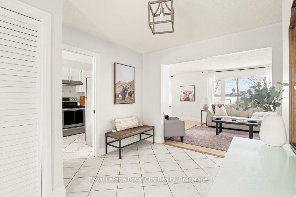Welcome to this charming country bungalow set on a beautiful half-acre property, offering space, comfort, and thoughtful updates and is just a short drive to all essential amenities. Step inside to a bright and functional main floor design that creates a seamless flow through the principal rooms, perfect for both everyday living and entertaining. The inviting layout features an eat-in kitchen plus a separate dining area, providing flexibility for casual family meals or more formal gatherings. Natural light pours through the updated windows, enhancing the warm and welcoming atmosphere throughout. The main level offers three well-appointed bedrooms, ideal for families, guests, or a home office setup. The updated 4-piece bathroom with ensuite privilege adds convenience and modern comfort to the sleeping quarters. Downstairs, the finished basement extends your living space with endless possibilities. Enjoy a spacious recreation room or play area for kids, along with a large bonus room complete with a handsome bar area- perfect for hosting game nights or relaxing with friends. A 3-piece bathroom, laundry area, and ample storage space complete the lower level. Outdoors, the fully fenced backyard overlooks peaceful farmer's fields, offering privacy and scenic views. Relax or entertain on the deck or inside the enclosed gazebo, surrounded by mature trees. A 20'x20' storage shed provides excellent space for tools, hobbies, or seasonal storage, while the 1.5-car attached garage and extended driveway ensure plenty of parking for family and guests. This home has been well maintained with important updates, including: furnace (4 yrs old), tankless water heater (4 yrs old), sewage pump (3 yrs old), 20' x 20' shed (5 yrs old), roof (11 yrs old), exterior siding painted (3 years ago), all new windows and doors (except for the front three windows). Offering the tranquility of country living with modern updates and everyday convenience, this property is ready to welcome you home.