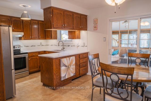 Spacious Family Home in good east end neighbourhood. Four levels of living space allow for diversity of use and private moments. The main floor offers an efficient kitchen separated by quartz topped counter from a dining area with patio doors to insulated 3-season room. Large living room completes this level. Steps down lead to the ground floor family room with bay window, gas fireplace and door to the backyard. On this floor is a laundry room/2pc bath plus a small bedroom/den with Murphy bed. Exterior doorway to driveway parking. Access to the basement stairs is from the Family Room and leads to a recently refurbished Rec Room. The second floor has three bedrooms and a recent bathroom upgrade with walk in shower and ample storage. A single detached garage completes the package in a neighbourhood close to East End amenities.