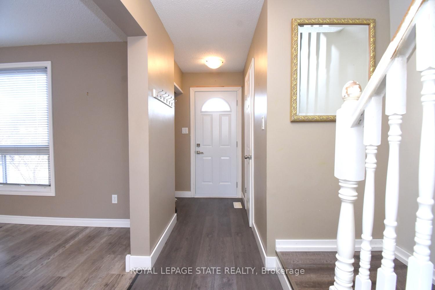 END UNIT! Highly sought after coveted Stoney Creek neighbourhood, this quite spacious 2 storey town home, is approximately 1247 square feet, with separate living & dining rooms, main floor powder room, features 3 bedrooms, 1-1/2 bathrooms, finished basement area with room for everyone, walking distance to almost everything, near parks, shopping, fabulous coffee shops and great restaurants, very affordable condo living, includes water, parking cable TV and so much more!