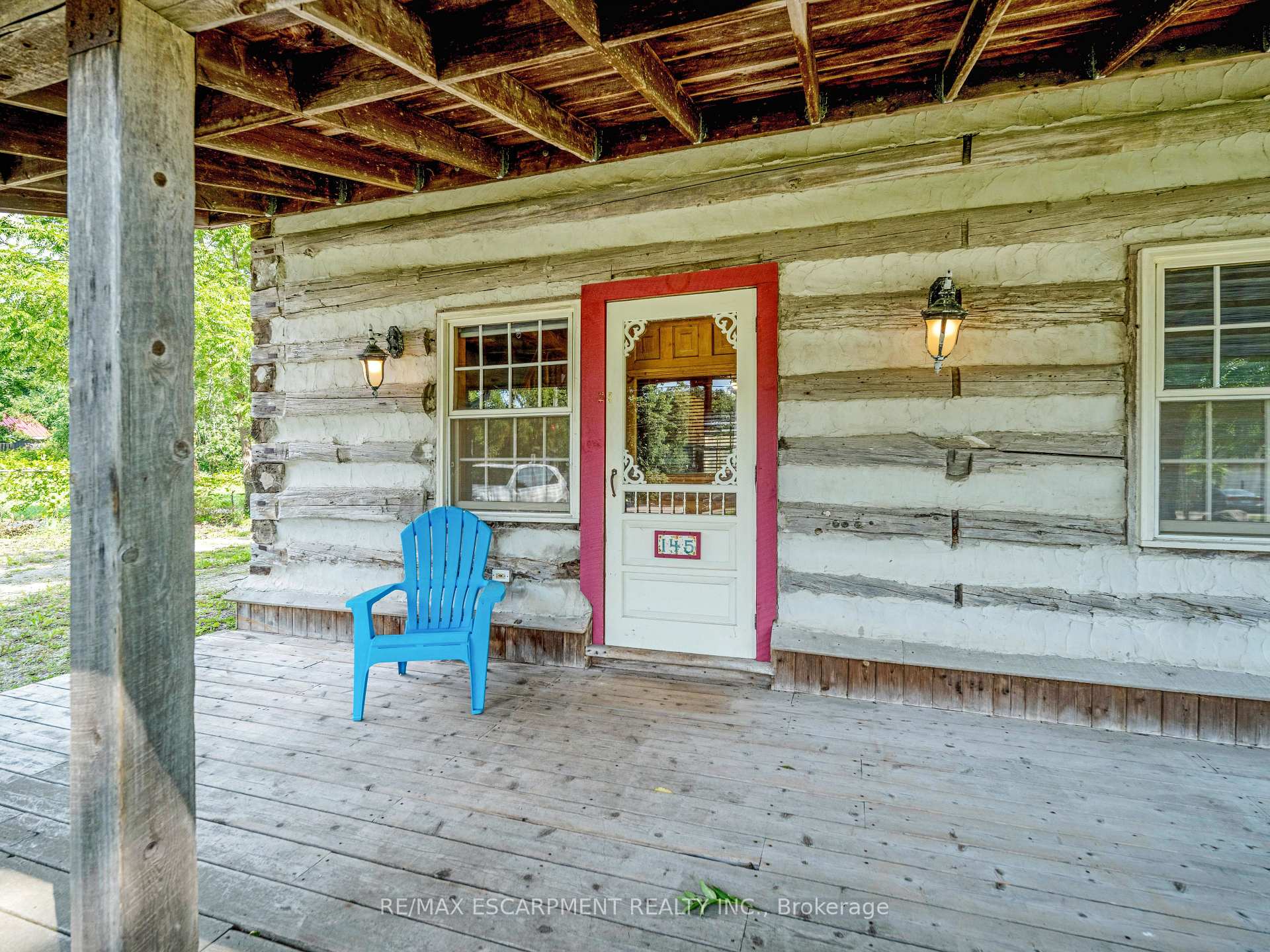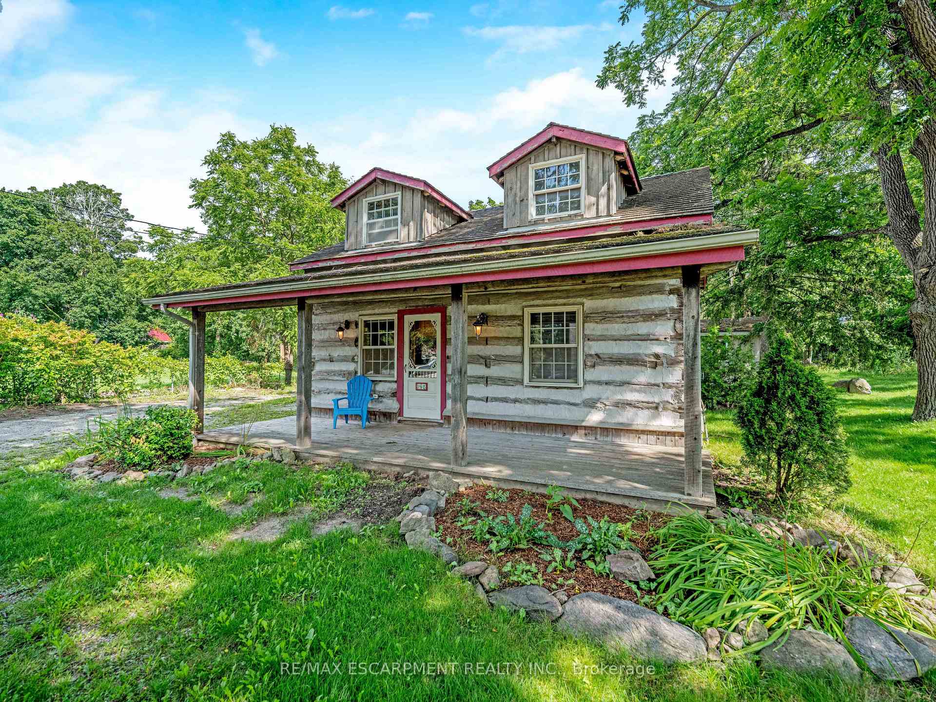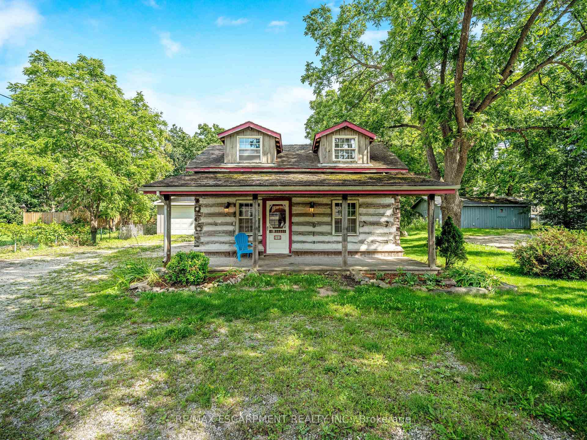 This charming log home is situated on a large mature lot in the heart of Rockwood. With a covered front porch you can sit outside and watch small town life from your rocking chair or enjoy some quiet time on the backyard patio. The floor plan is open concept with the living room and dining room having a catherdal beamed ceiling. Wide plank pine floors adorn the main floor. A generous loft is the perfect place for your bedroom, overlooking the main floor. Dormer windows provide natural light into the loft. The heated and insulated double garage/workshop is the perfect place for your cars and toys. Just 15 minutes to Guelph and 20 minutes to the 401, this home is conveniently located.