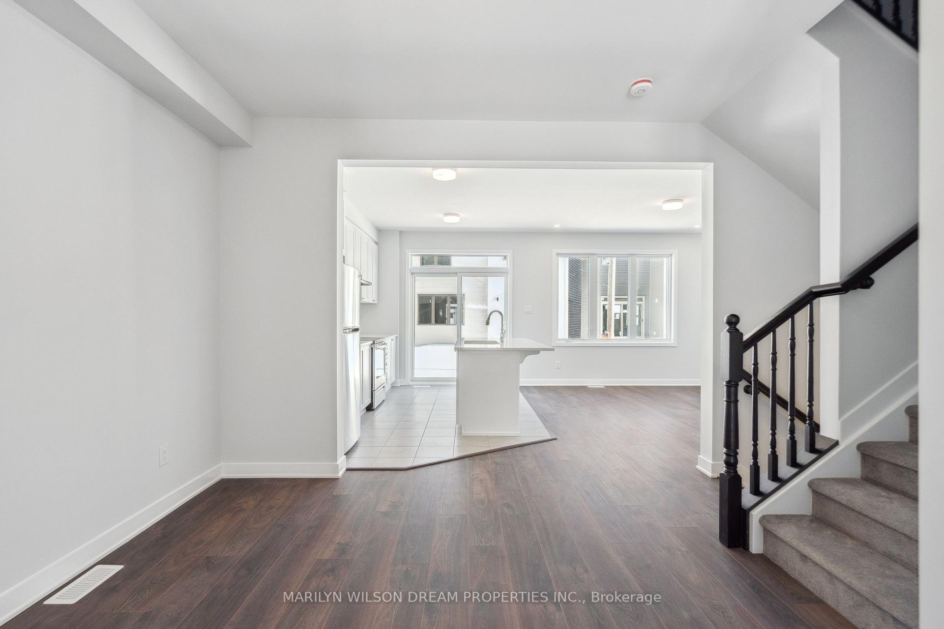Welcome to 109 Yearling Circle in Richmond, located in a growing community close to parks, amenities, and schools. This bright home features south-facing windows and an open-concept layout that fills the space with natural light. The contemporary design is highlighted by a sleek linear gas fireplace and stylish finishes throughout.The modern kitchen offers white cabinetry, quartz countertops, stainless steel appliances, generous counter space, and a functional island with additional storage while patio doors lead to your outdoor space for relaxing or entertaining. Upstairs, the primary suite provides a relaxing retreat with a walk-in closet and spa-inspired ensuite featuring a glass shower and freestanding tub. The main bathroom and two additional bedrooms complete the upper level. The unfinished basement offers versatile space for a rec room, play area, or storage. Images are from when the unit was vacant. Kitchen and primary bedroom images are virtually staged. 24 hour notice is required for showings.