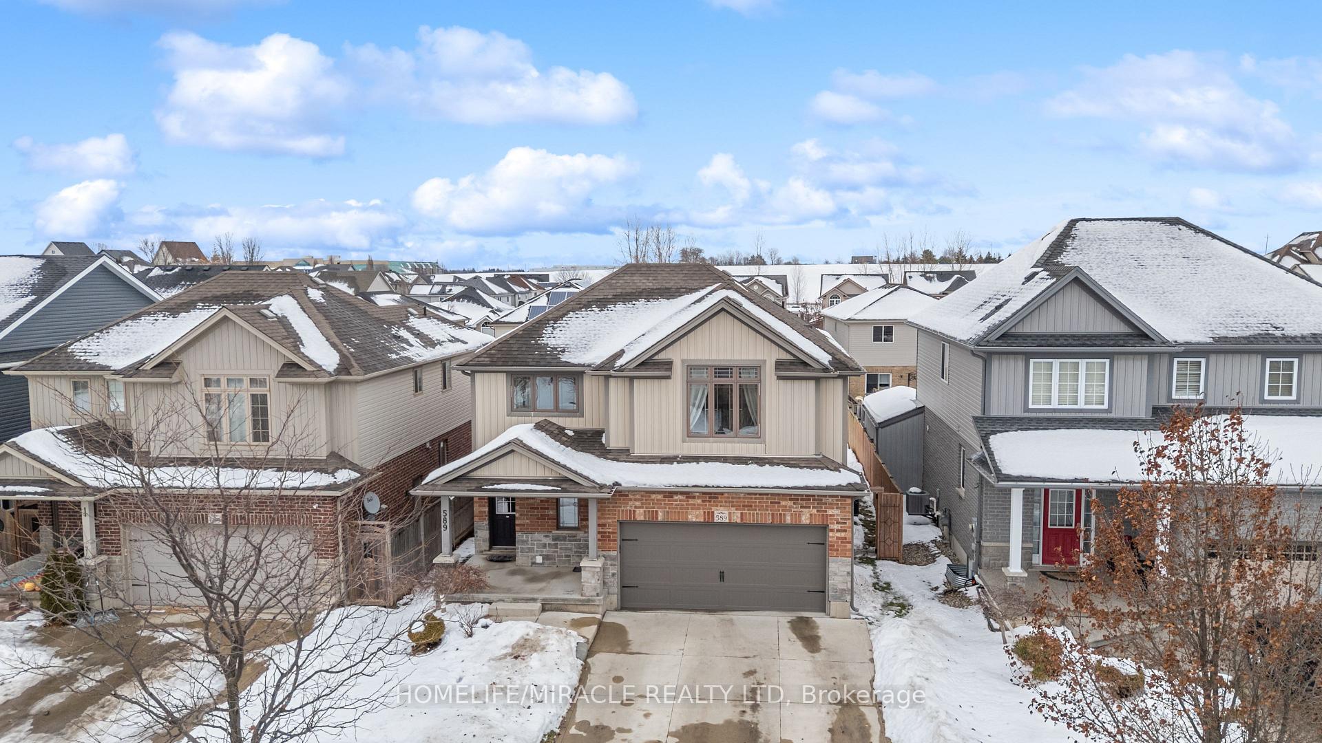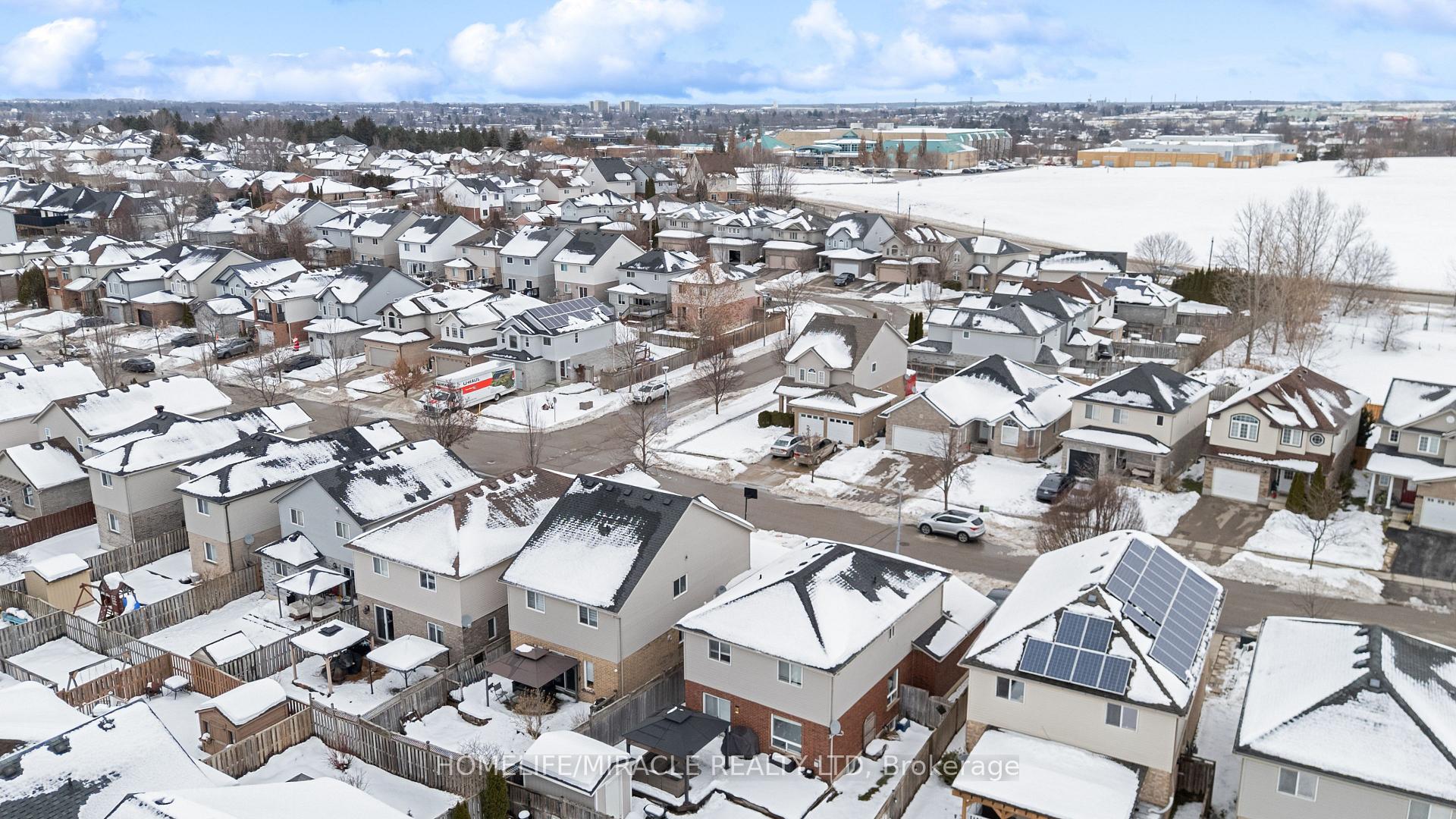 Stunning Upgraded Detached Home in a Prime Location - Move-In Ready! This beautifully updated two- storey home offers the perfect blend of style, space, and comfort. Step into a bright open-concept main floor featuring a modernized kitchen with new tile backsplash, freshly painted cabinets, gas stove conversion, and sleek pot lights throughout the kitchen and dining area. The show-stopping living room boasts a soaring 16-ft sloped ceiling and a custom-built fireplace with a designer feature wall-creating an impressive and inviting space perfect for entertaining. Walk out to your private deck and fully fenced backyard complete with a pergola-ideal for summer gatherings and family time. Upstairs, enjoy three spacious bedrooms including a primary retreat with its own 3-pieceensuite. The insulated basement offers excellent potential for future customization. Located in a highly desirable neighborhood close to top-rated schools, hospital, Hwy 401, and community amenities.
