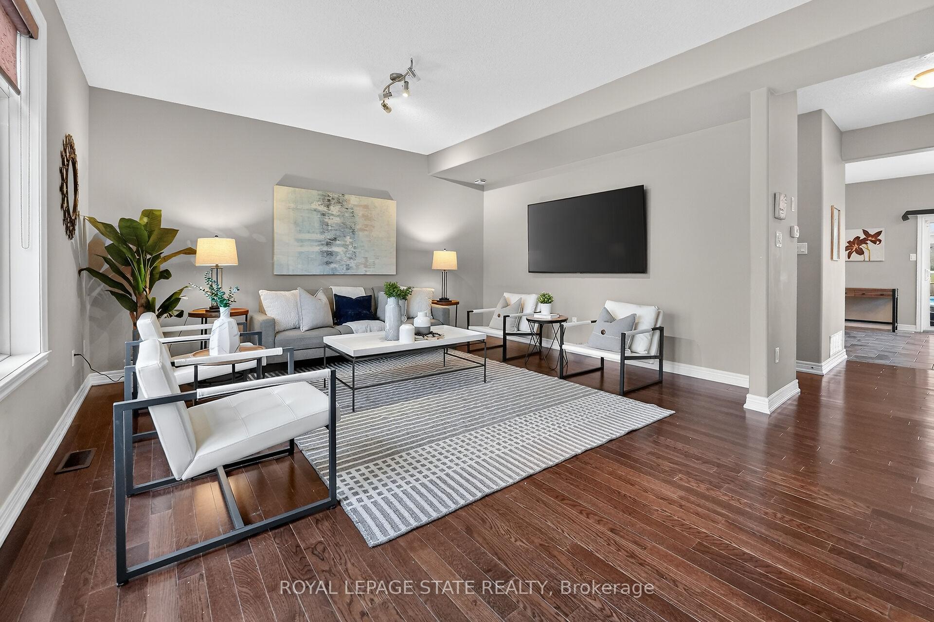 Welcome to 4100 Cassandra Drive, a move-in-ready freehold end-unit townhouse offering over 2,200 sq ft of total finished living space. This 1,900 sq ft (above grade) home provides the privacy and feel of a detached property, featuring 9-foot ceilings on the main level that create an exceptionally bright and airy atmosphere. Situated in a premier Beamsville neighborhood, this home backs directly onto a serene park and is just steps from the local elementary school. Boasting a new roof (2024), a double-car garage, and an oversized driveway with parking for four cars, it is perfectly prepared for family life. The main floor features hardwood flooring, an expansive living room, and a sun-filled, oversized eat-in kitchen. Upstairs, you'll find durable vinyl flooring throughout three generous bedrooms, including a primary suite with a walk-in closet and a 3-piece ensuite. On clear days, enjoy glimpses of Lake Ontario and the Toronto skyline from the second floor. The backyard is a private entertainer's dream, featuring a large deck, a cedar gazebo, an above-ground pool, and dedicated gas lines for both a BBQ and fire pit. The walk-out basement includes a cozy, private recreation room-ideal for a home office or quiet retreat-completing this incredible opportunity in the heart of Niagara's wine country.